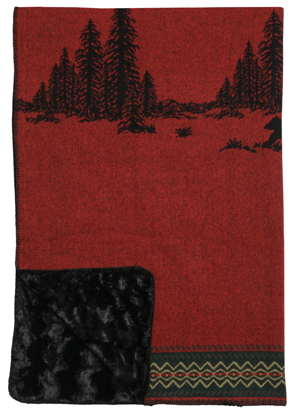 Wooded River Bear Throw: Front-Wooded River Bear: 40% Acrylic, 30% Poly, 25% Wool, 5% Other, Back: Obsidian Cuddle Fur-100% Polyester