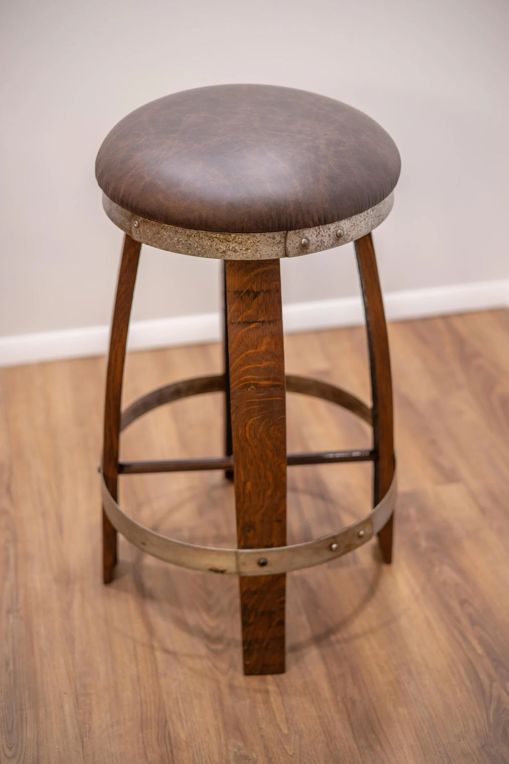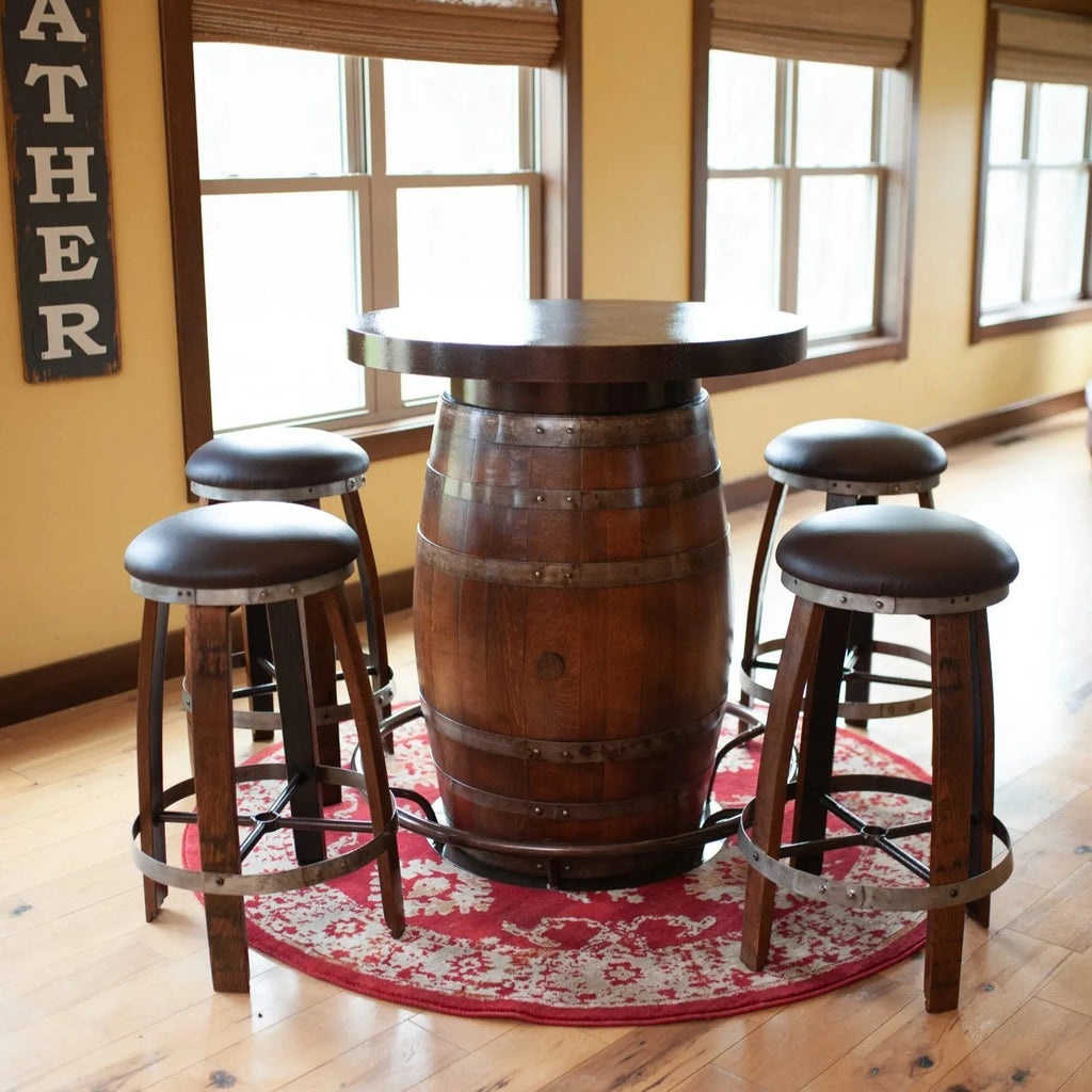 Discover our handmade pub wooden stools, crafted in Ohio from reclaimed barrel staves for a rustic yet refined look. Choose from 4 stain options to match your style. Perfect for bar seating or restaurant bulk orders, these durable, upcycled bar stools are also available in 4 different heights and affordable price. Enjoy free shipping in the continental USA!