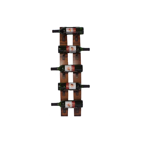 The 5-Bottle Wall Rack is crafted from recycled wine barrel staves and wrought iron. This wall rack is a statement piece that celebrates both craftsmanship and eco-conscious design. Designed to accommodate five of your favorite wine bottles, this wall rack becomes a functional piece of art. Showcase your wine collection in a stylish and space-efficient manner. Made in the USA!